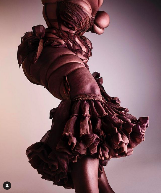 Michaela Stark est une styliste et artiste née à Brisbane, en Australie. Adolescente complexée par son corps et son bonnet affichant « F », elle ne trouve de sous-vêtements adaptés que dans une boutique appelée Big Girls Don’t Cry (Anymore). Cette expérience influencera son travail artistique, qu’elle développera autour du corset : ce vêtement fait pour formater les corps, les contraindre et porteur d’une certaine charge érotique. A contre-courant d’une société qui valorise et érotise les corps minces, Michaela Stark utilise des matériaux « doux » tel que la soie, le taffetas, la mousseline, et les rubans pour créer des pièces de lingerie et des corsets asymétriques qui exsangue le corps à l’extrême, le marque et le fait éclaté tout en courbes et en rondeurs.