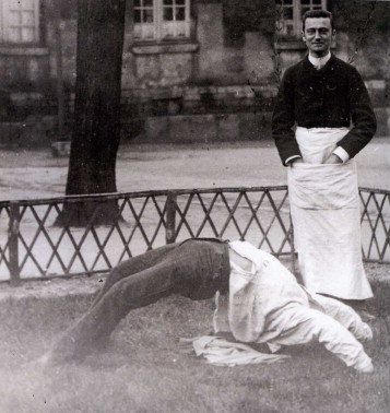 Un homme en pleine crise d’hystérie et plus particulièrement en « arc de cercle hystérique ».
