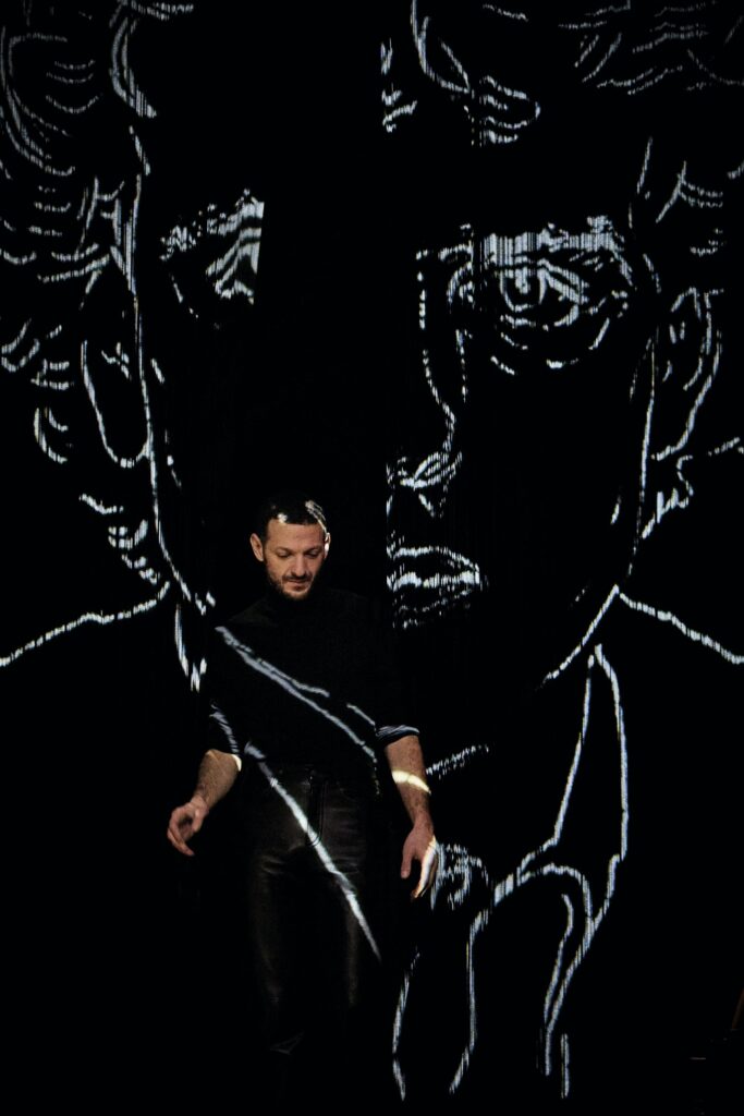 J’ai adoré cette adaptation du journal de jean Luc lagarce servie par Vincent dedienne et je peine à imaginer un autre comédien qui pourrait incarner le personnage de lagarce avec justesse et sensibilité. La mise en scène est délicate, sensible. Un rideau de franges noires sur lequel sont projetées les illustrations bien souvent faites en direct par Irène Vignaud présente sur scene avec sa palette graphique. Les dates, les paysages traversés, les corps, silhouettes et portraits de ses amants, de ses idoles habilles la traverser de son journal et illustre en douceur les paroles de lagarce énoncées par Vincent Dedienne.