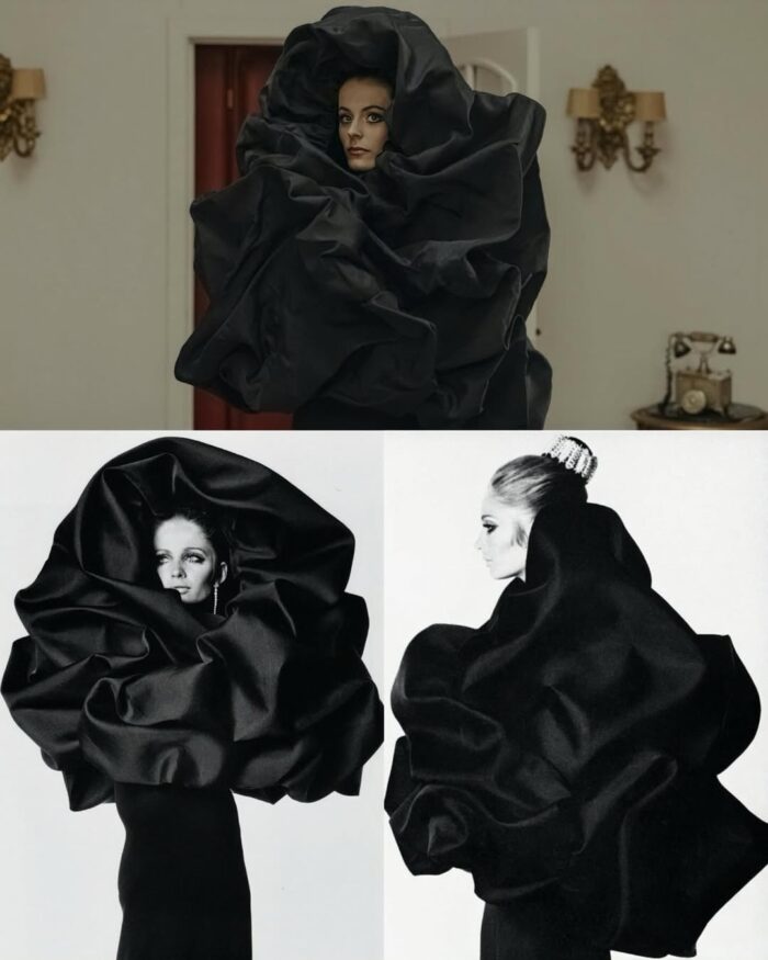 Le travail des costumes est colossal. La costumière de la série a eu accès aux archives Balenciaga afin de retranscrire au mieux les créations du couturier.