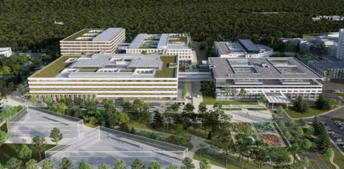 Le bâtiment central accueillera les blocs opératoires et les unités de soins critiques. Il sera connecté aux urgences, à la radiologie interventionnelle, à la pharmacie centrale, au laboratoire de biologie médicale et à l’imagerie.