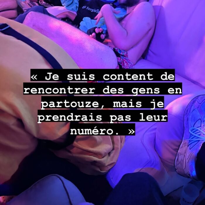 Qu’en est-il de nos amitiés ? Sont-elles présentes en dehors de simples beuveries, soirées, etc. ? Sont-elles faites de liens solides ou de la même hypocrisie, la même retenue et cette même peur de l’intimité, de la fragilité ? Ou reproduisons-nous, là aussi, les mêmes mécanismes de fuite ?