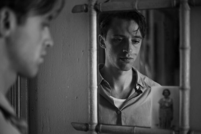 Taiseux, détaché, épuré, Benjamin Voisin, qui incarne Meursault, propose une interprétation respectueuse de la psychologie du personnage telle qu’on se la figure à travers le livre. Puis, crescendo, le jeu se muscle à mesure que la complexité du personnage s’épaissit, révélant les multiples tensions intérieures qui le traversent.