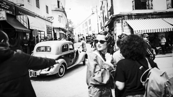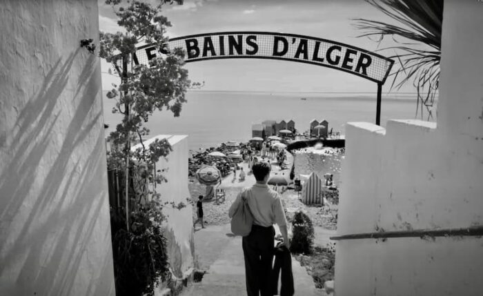 Bien que le film n’ait pas été tourné à Alger (mais à Tanger), les lieux de tournage retranscrivent fidèlement l’ambiance du livre. Le choix du noir et blanc constitue un véritable atout pour le film. Ozon a su tirer parti de ce format, qui renforce l’atmosphère et la tension du récit. Ce passage au noir et blanc, initialement contraint par la difficulté et le coût de produire un film en couleur, devient une force esthétique : reproduire l’Alger de l’époque en couleur aurait été plus complexe et plus onéreux, et pourtant, cette contrainte technique et financière sert pleinement la luminosité, la composition et l’atmosphère de l’histoire.