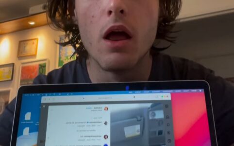 Sur Instagram, Etienne bourdaud se film en train de rejouer une séquence pioché sur internet alors que cette même séquence est diffusé en simultané via le PC qu...